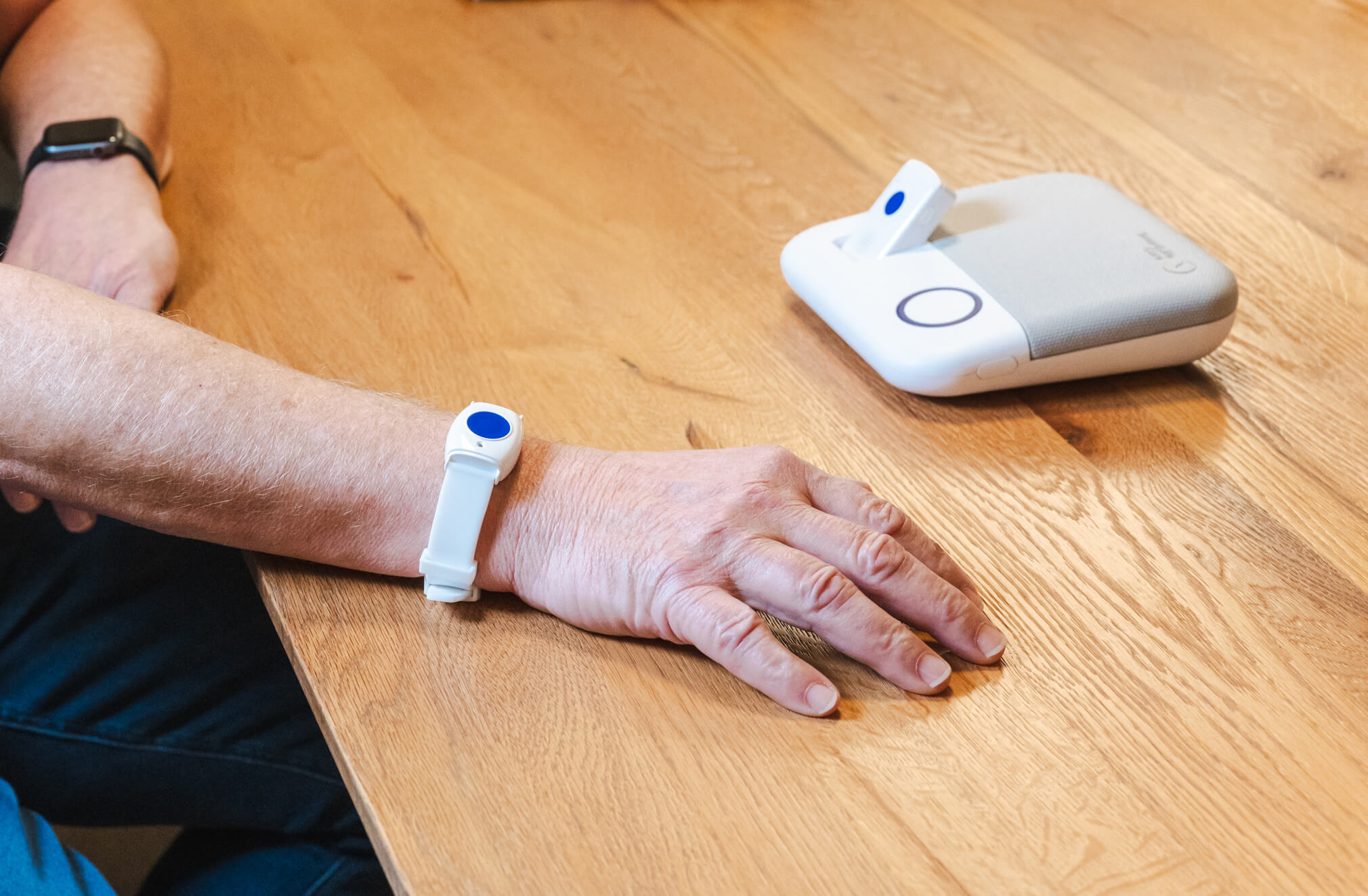Mit der Ruftaste, am Handgelenk oder um den Hals getragen, kann jederzeit ein Notruf ausgelöst werden. Bei einem Notruf benachrichtigt der Beantwortungsdienst unverzüglich jemanden aus dem Verwandten- oder Bekanntenkreis. Zur Hilfeleistung begibt sich die persönliche Kontaktperson in die Wohnung der Kundin / des Kunden.